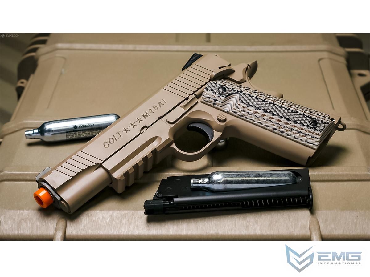Cybergun Colt Licensed 1911 Tactical CO2-Powered Airsoft Gas Blowback Pistol by KWC (Model: Desert Sand / Gun Only)