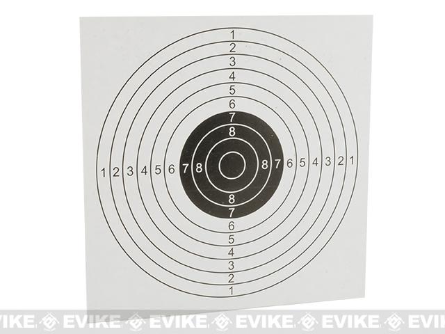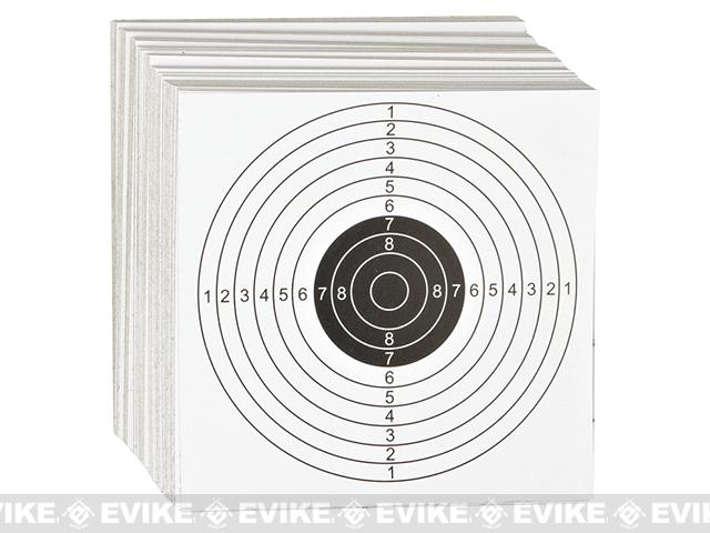Professional grade shooting target 14cm x 14cm (5.6" x 5.6") in size for real steel, Air gun and Airsoft accuracy shooting use. Comes in a bulk pack of 100 with bulls eye and scoring rings. Made with heavy duty card stock for improved longevity.