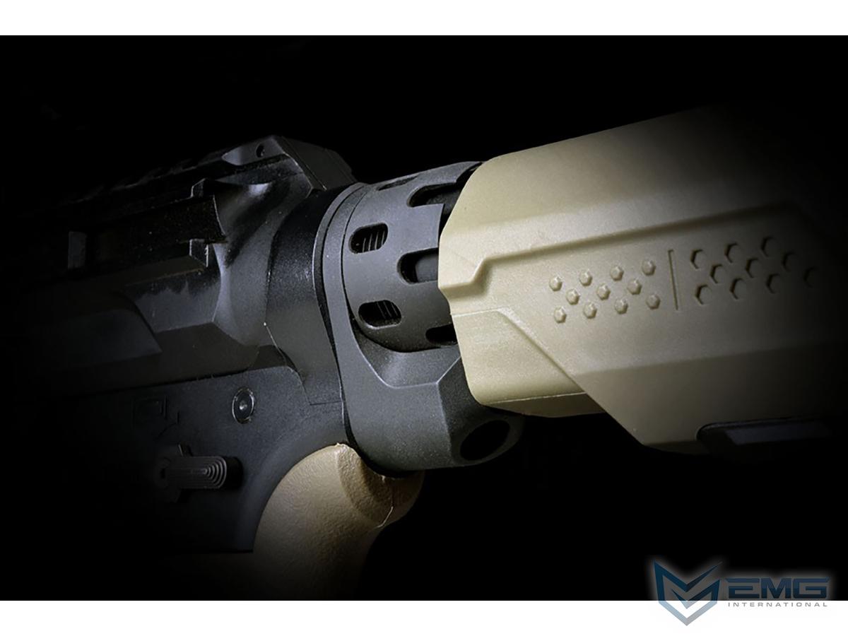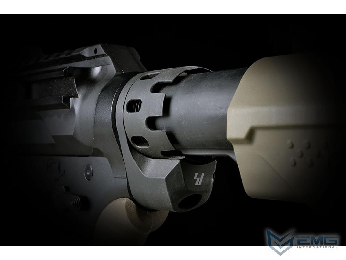 Yet another first, the Enhanced Castle Nut and Extended End plate combo represent Strike Industries� dedication to thinking outside the box. The SI Enhanced ECN and EEP stand out from the generic parts kit units in both aesthetics and function. The steel castle nut has been lengthened to match the extended end plate, supporting more of the receiver extension�s threaded area, and improving aesthetics. The extended end plate features a Quick Detach sling swivel mount, pushed back away from the webbing of the primary hand. This allows weapons manipulations in tight spaces and under stress, without the startling pain that can result from a pinched hand when using a sling attached to a standard, flat QD end plate.