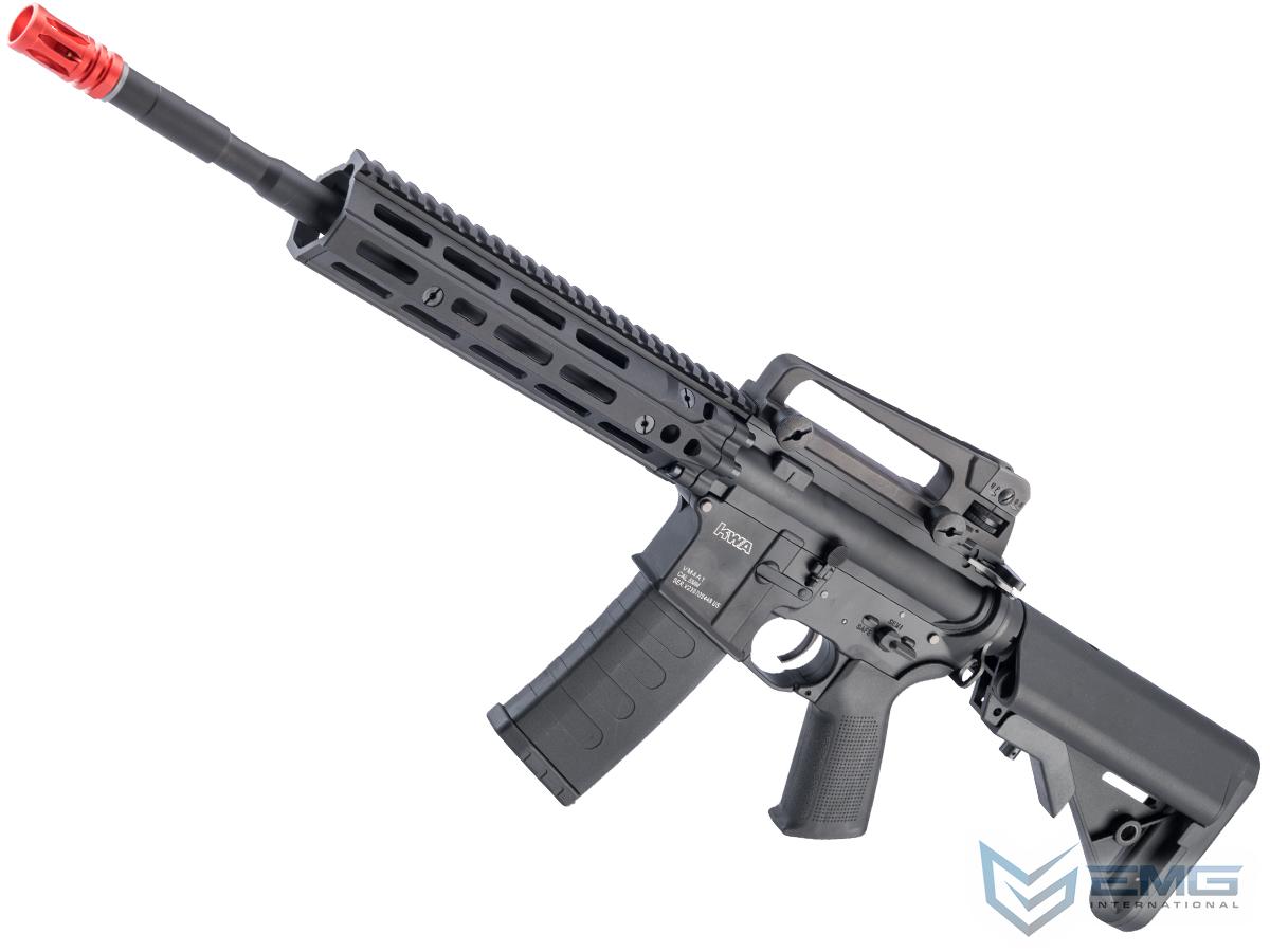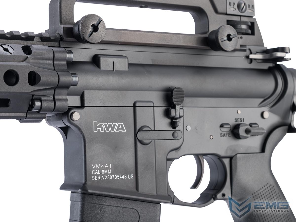 This updated classic takes the M4A1 model to a new level of performance with a one-piece full metal alloy upper receiver, a new rotary hop up and a PTS Enhanced Polymer Grip for added comfort. Rear-wired and Li-Po ready, the VM4A1 can still handle the extra power of LiPo batteries. The VM4A1 is also equipped with a reinforced metal gearbox utilizing KWAs unique 9 mm ball bearing bushing combination and case hardened, precision metal gear sets. Heavy duty springs and high-torque motors are matched for optimum results. The KWA VM4A1 Carbine was engineered to outperform the competition, offering ultra high performance and dependability straight out of the box.