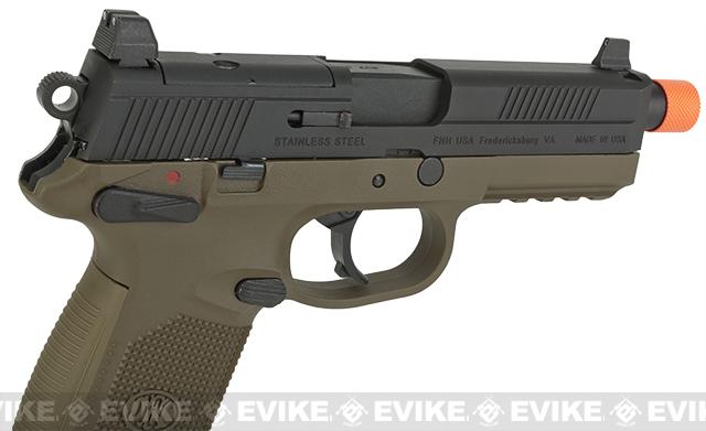 Cybergun FN FNX-45 Tactical Airsoft Gas Blowback Pistol by VFC (Color: Black Slide & Tan Frame / Add 3 Extra Magazines)