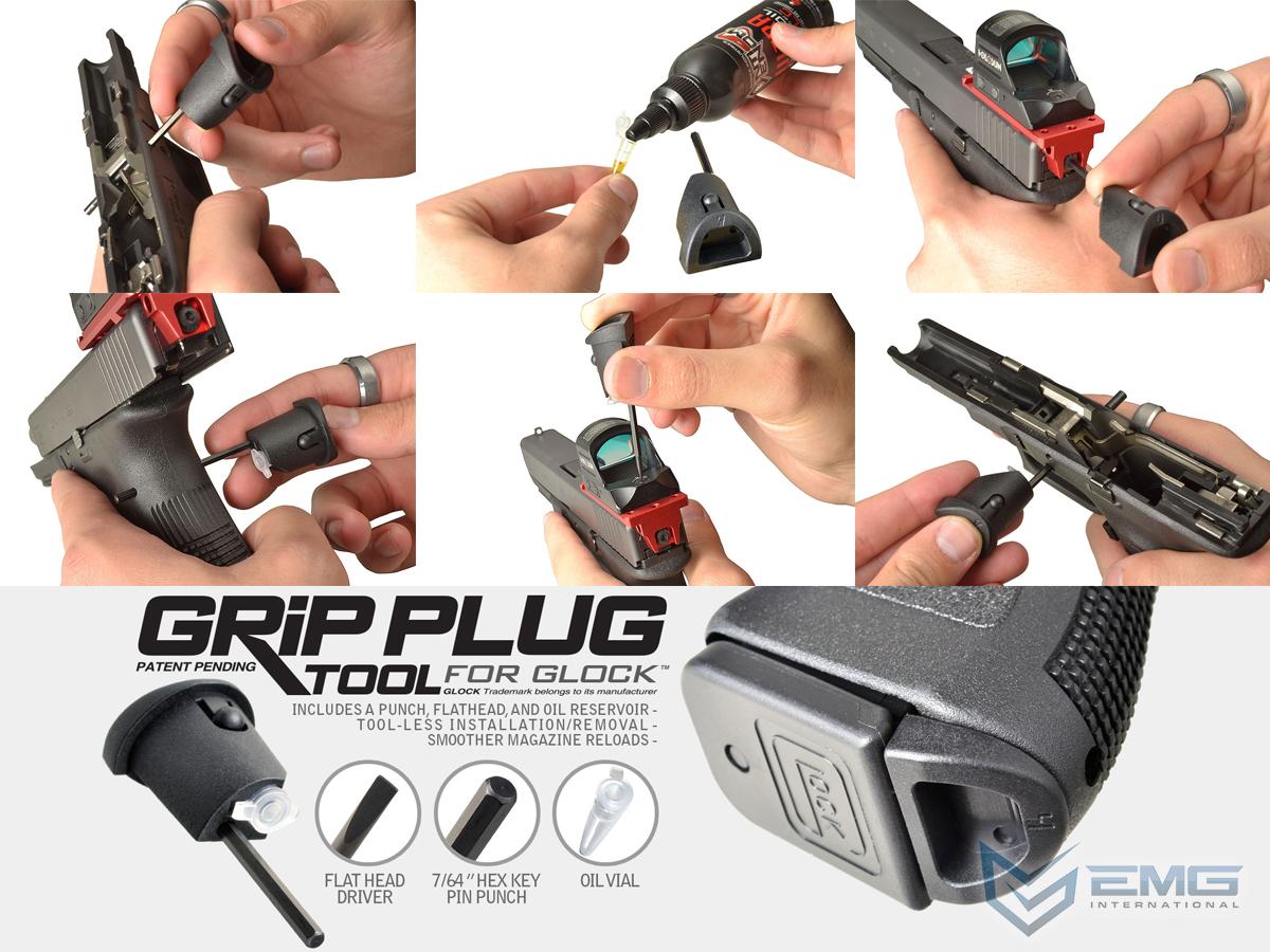 The Strike Industries� Grip Plug tool for GLOCK pistols is a field expedient toolkit that pulls double duty as a magazine ramp when installed. As reliable as GLOCKs are, we know that sh*t happens, and when it does, Strike Industries has the perfect paddle to get back down that proverbial creek. Featuring a stainless steel punch, with a reverse flathead to help with disassembly, and an oil reservoir, this handy tool has what you need to get your gun back up and running (replacement broken parts not included). When not needed, the Grip Plug Tool functions as a handy magazine ramp to help smooth out reloads and the low profile ensures it stays out of the way.