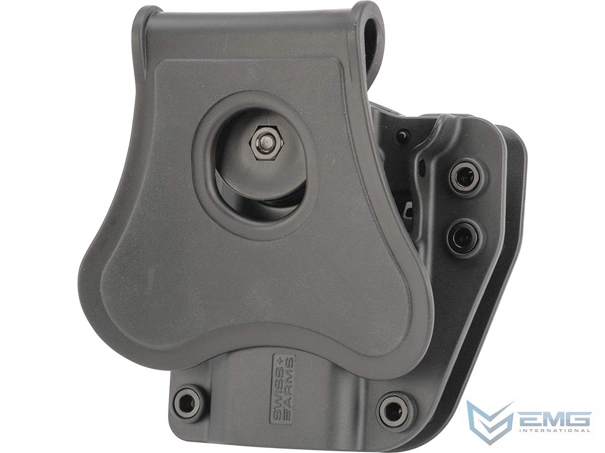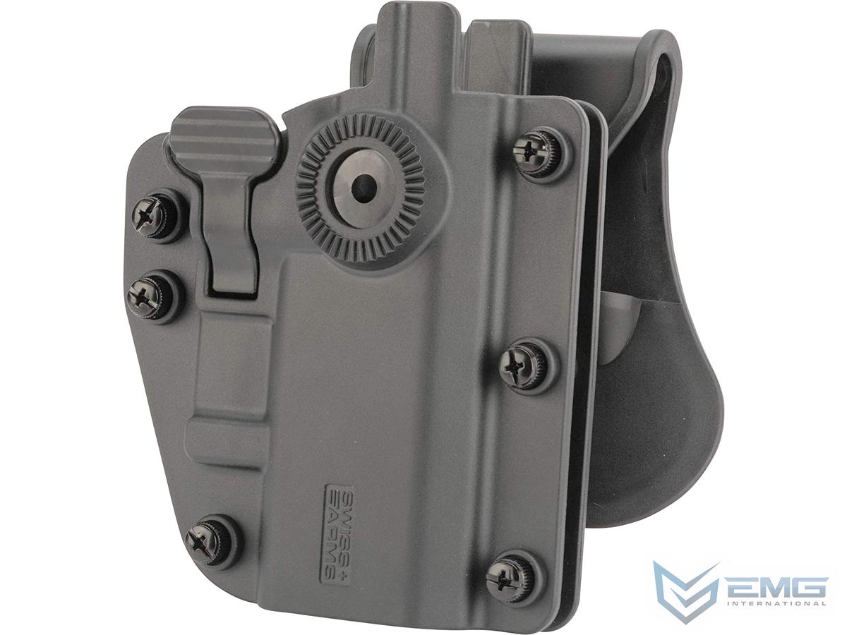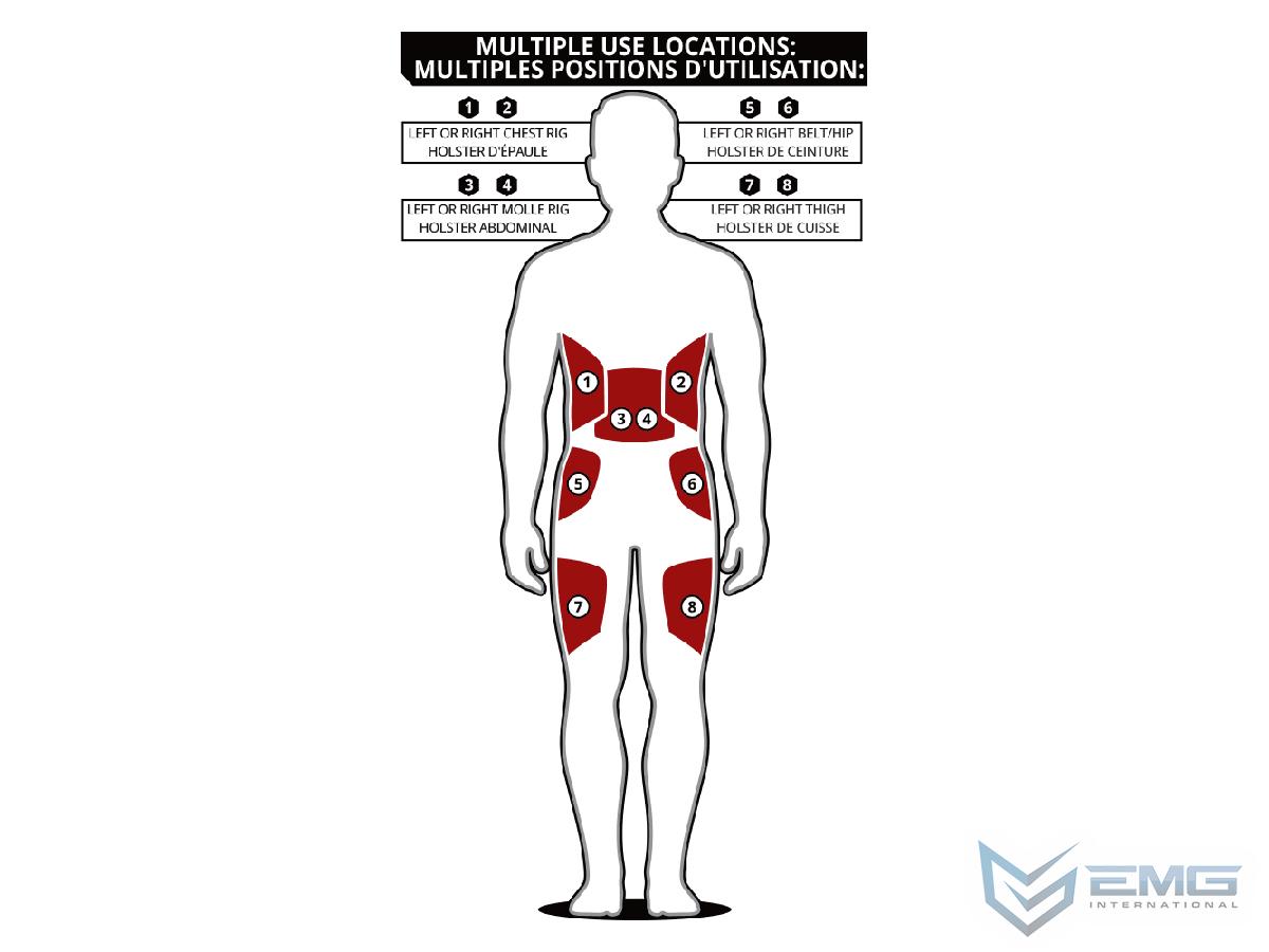This unique retention holster option from ADAPTX eliminates the need of purchasing more than 1 holster for each of style and size of pistol in your arsenal. The six-step adjustable construction accommodates seemingly unlimited models of pistols made by companies such as Beretta, Colt, FN Herstal, GLOCK, Heckler & Koch, Smith & Wesson, Sig Sauer, Tauros, Tanfoglio, and much more! The specially designed ambidextrous build ensures both left and right handed players can use this holster with no limitations to functionality or comfort. The ABS plastic construction keeps this tactical accessory lightweight while still being extremely durable and can be attached to your MOLLE gear, thigh, belt, hip, or chest rig for the perfect fit. Never buy another holster again and pick yourself up one of the most versatile holsters on the market today.