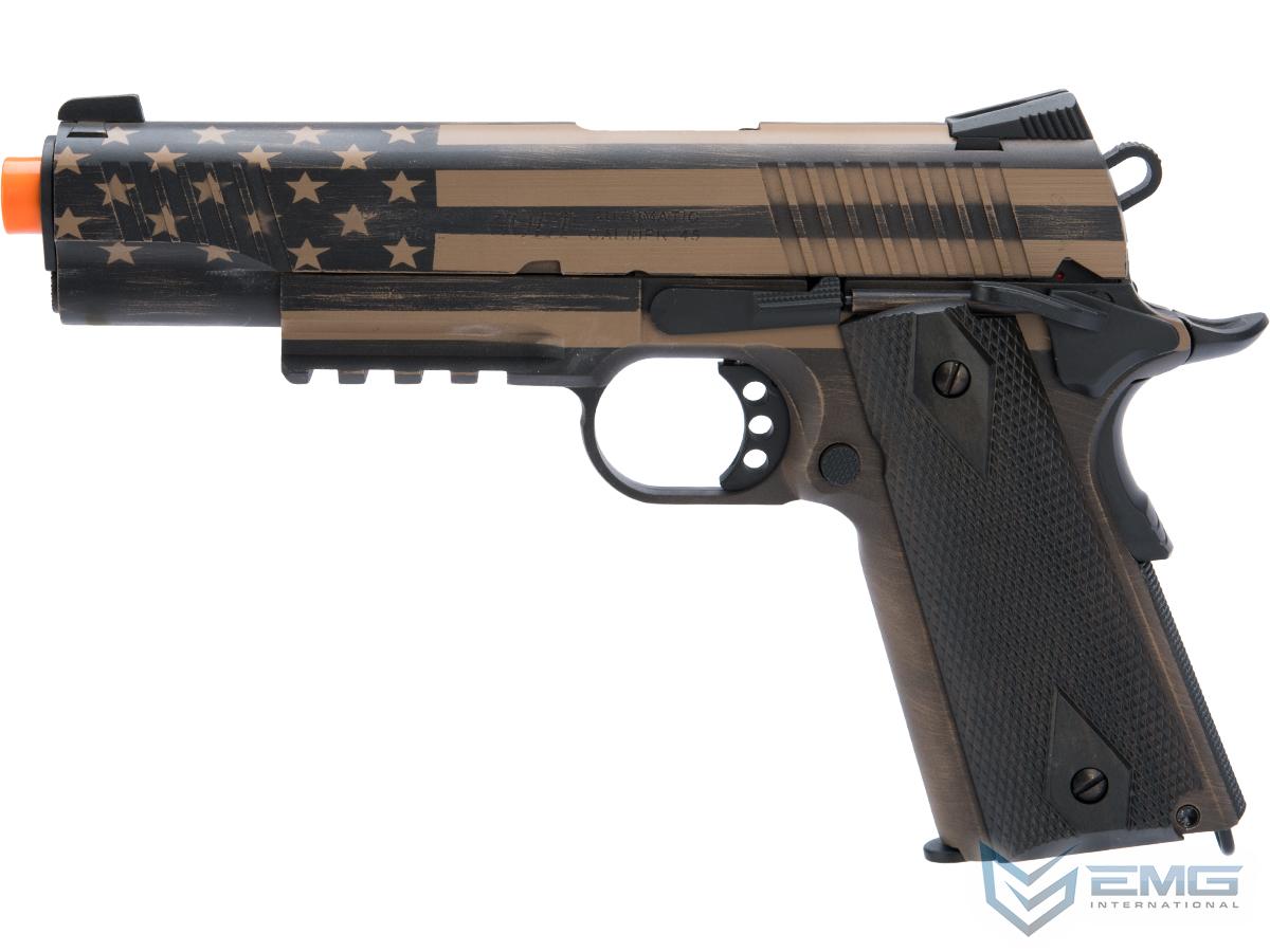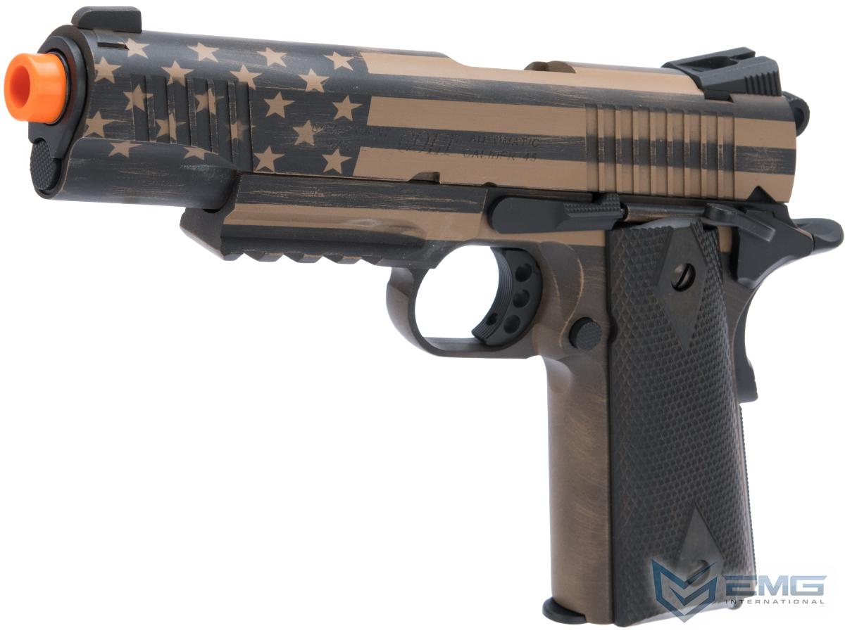 Colt Licensed 1911 Tactical Full Metal CO2 Airsoft GBB Pistol by KWC w/ Black Sheep Arms Custom Cerakote (Color: Distressed Flag)