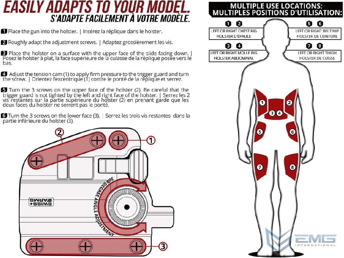 This unique retention holster option from ADAPTX eliminates the need of purchasing more than 1 holster for each of style and size of pistol in your arsenal. The six-step adjustable construction accommodates seemingly unlimited models of pistols made by companies such as Beretta, Colt, FN Herstal, Glock, Heckler & Koch, Smith & Wesson, Sig Sauer, Tauros, Tanfoglio, and much more! The specially designed ambidextrous build ensures both left and right handed players can use this holster with no limitations to functionality or comfort. The ABS plastic construction keeps this tactical accessory lightweight while still being extremely durable and can be attached to your MOLLE gear, thigh, belt, hip, or chest rig for the perfect fit. Never buy another holster again and pick yourself up one of the most versatile holsters on the market today.