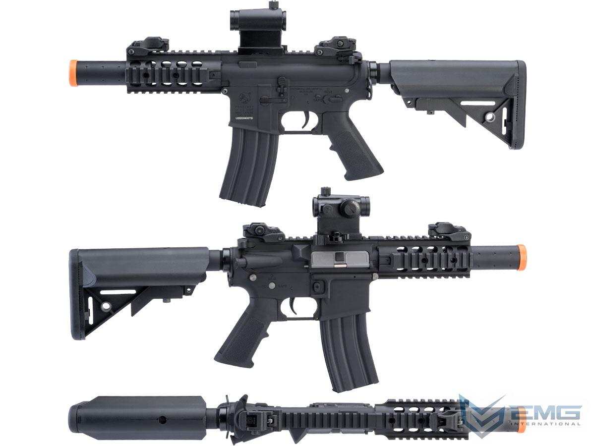 Colt Licensed Elite Line Full Metal M4 AEG by Cybergun (Model: M4 SBR w/ 5" Quadrail / Black / Go Airsoft Package)
