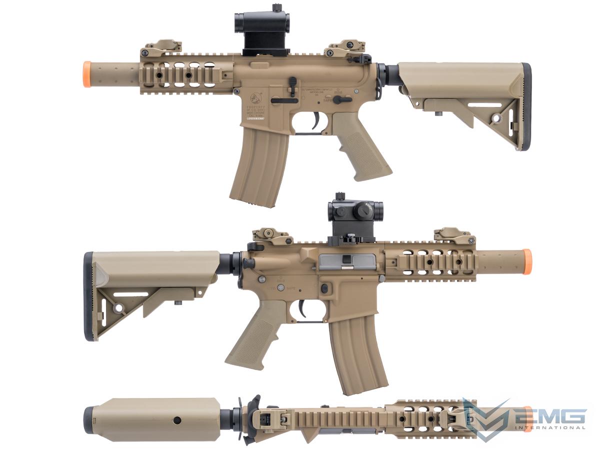 Colt Licensed Elite Line Full Metal M4 AEG by Cybergun (Model: M4 SBR w/ 5" Quadrail / Tan / Go Airsoft Package)