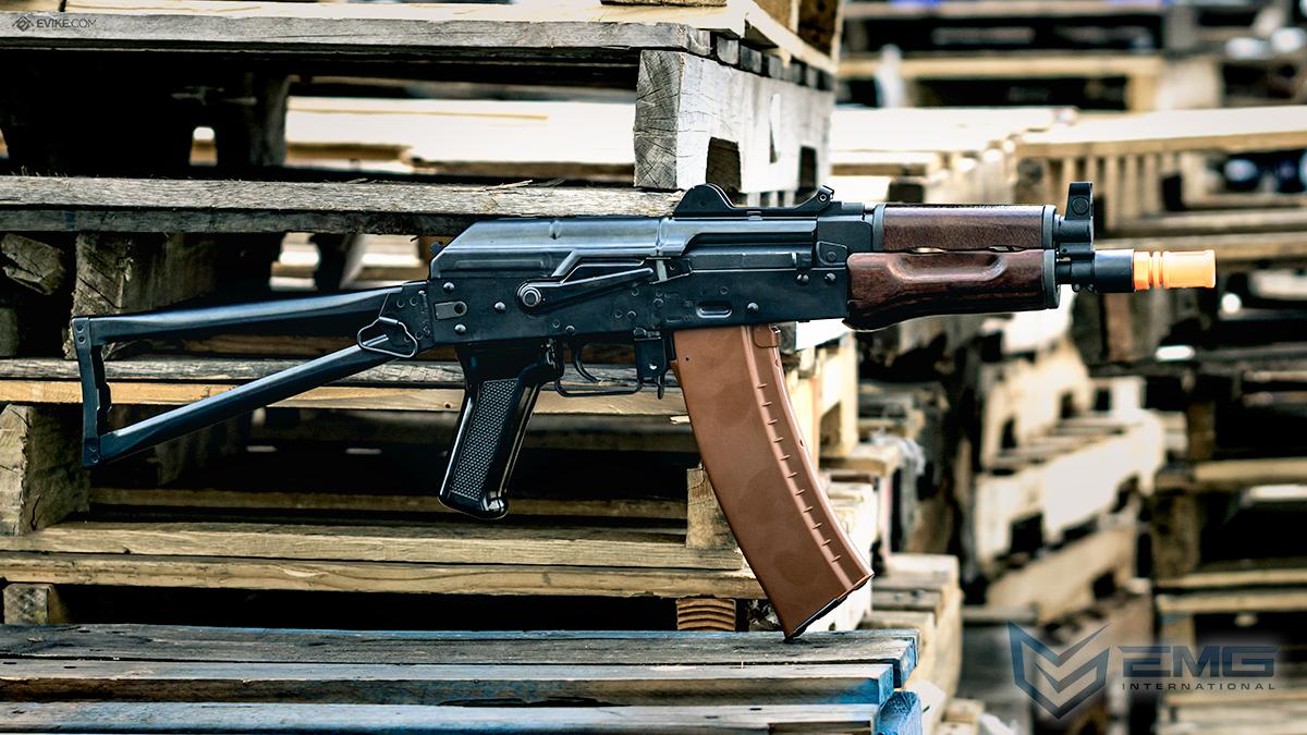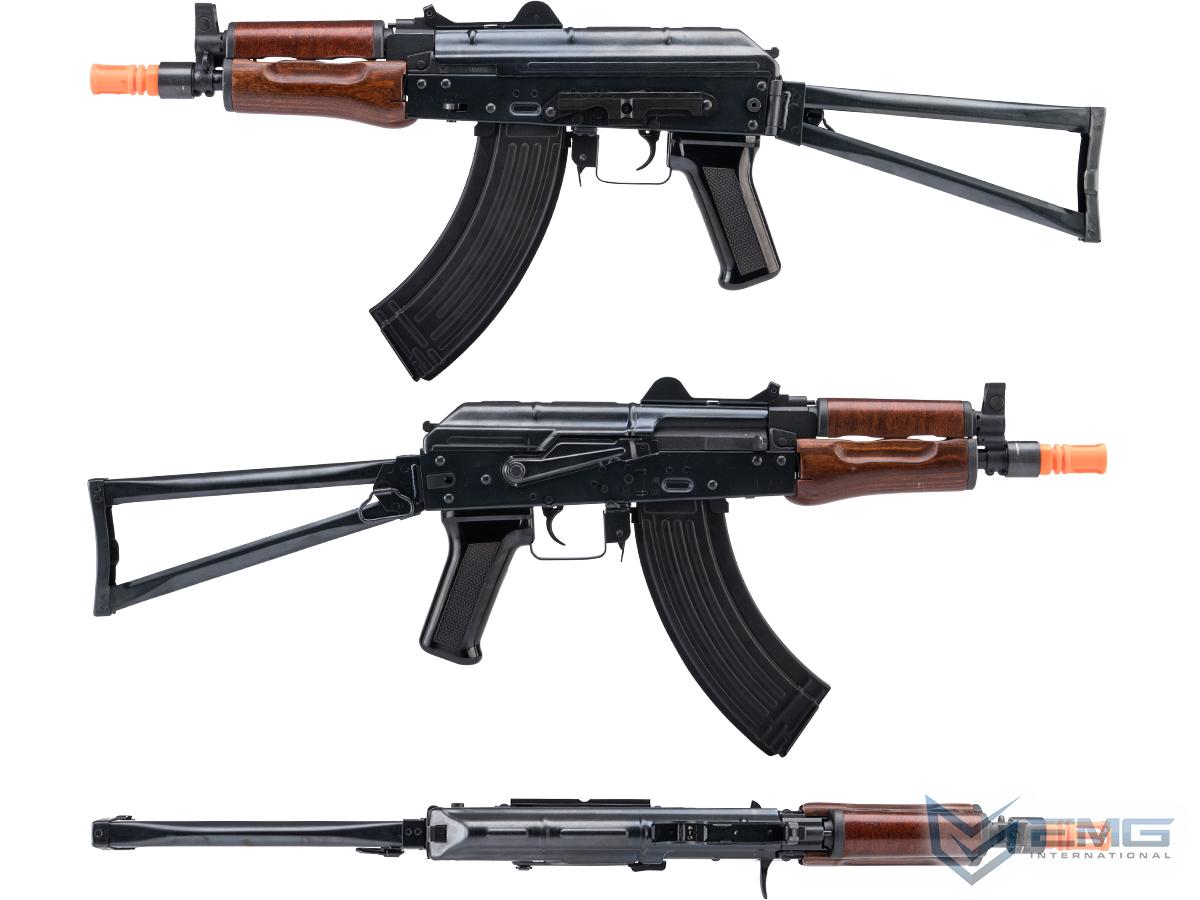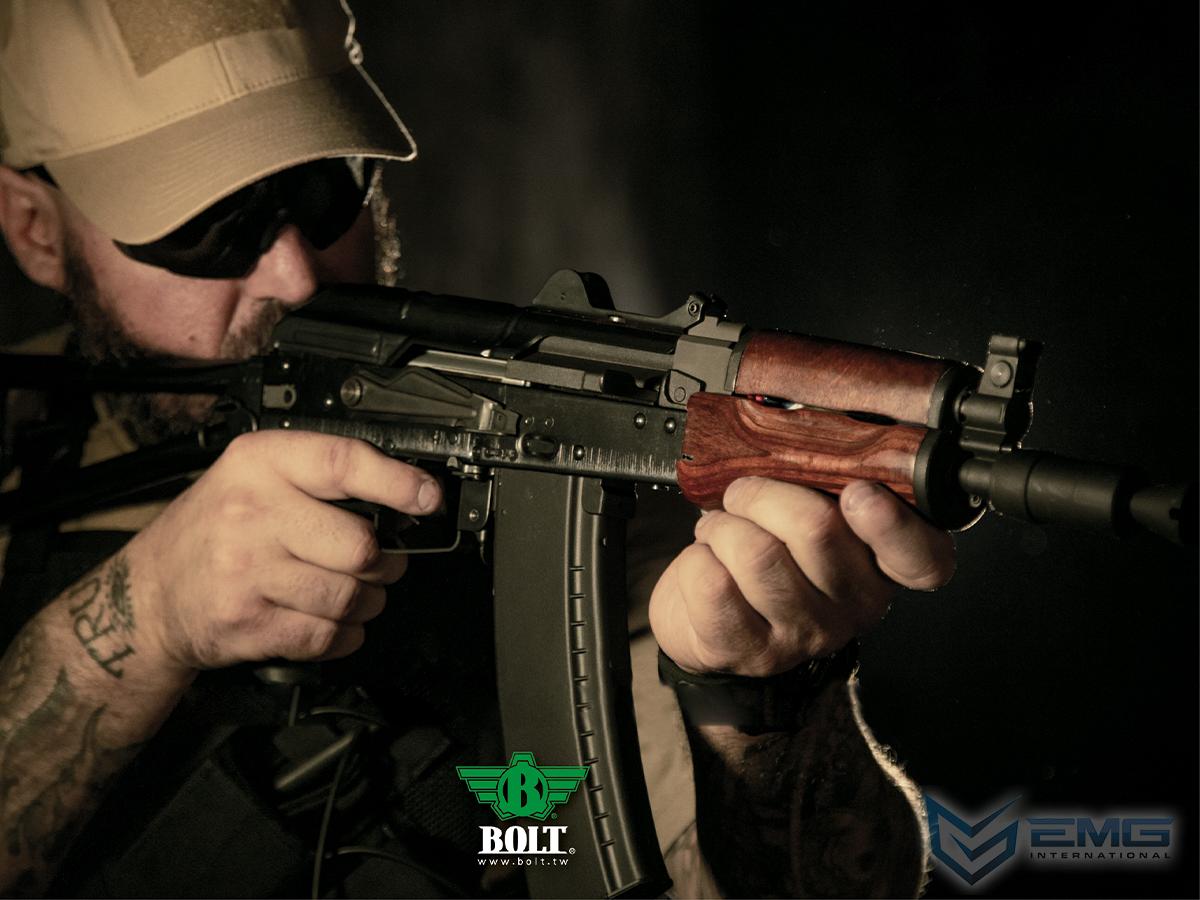 Kalashnikov Cybergun Bolt Airsoft AKS74U B.R.S.S EBB Airsoft AEG Rifle (Color: Black/Wood Light Brown)
