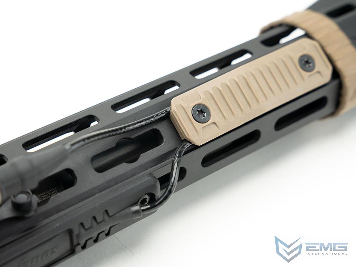 The Strike Industries M-LOK Cable Management Covers add a positive tactile feeling but also utilizes the patent pending SI Cable Management System® (CMS) function enables you to organize and store excess wire from your weapon light or any other cabled accessories. Instead of tucking wire anywhere you can and using cable ties or tape to hold it down, the SI CMS will offer you a place to route and/or contain loose wire inside the cover cavity. Cables can be routed alongside the handguard, across to the other side, 90-degrees or U-shape. The directions and possibilities are almost endless. Designed to be low-profile (6.20mm (0.24â) height) and used in any orientation, the contoured covers add ergonomic textured surfaces to your handguard. Made of durable and lightweight polymer, the covers are also a quick and affordable upgrade to mitigate any heat transfer between the barrel and the shooters hands while organizing and routing cables just about any way you want. Available in a Long version that is 79.80mm (3.14â) in length that comes in a 2-pack or a Short version that is 39.90mm (1.57â) in length that comes in a 4-pack. Get one length or both and always have the Strike Industries M-LOK Cable Management Covers you need to get a grip and manage your cables at the same time.