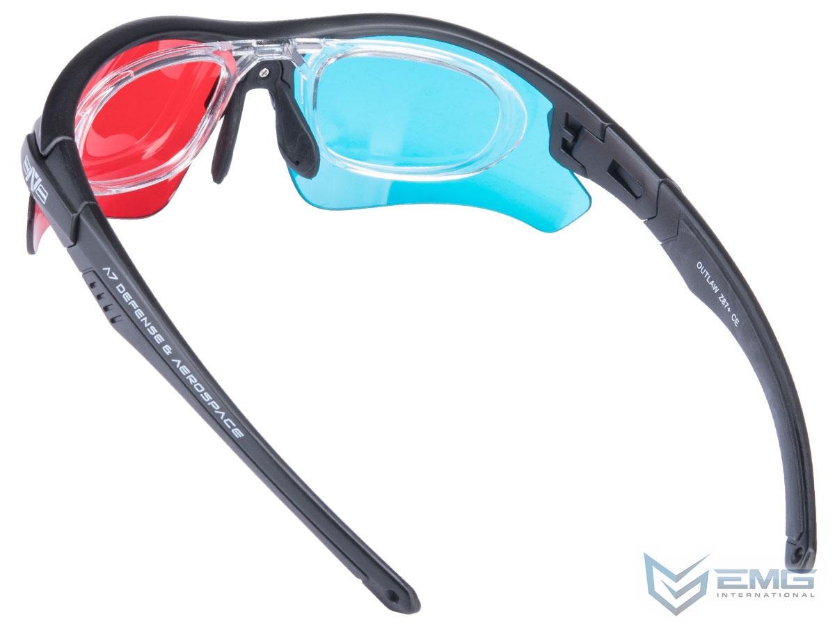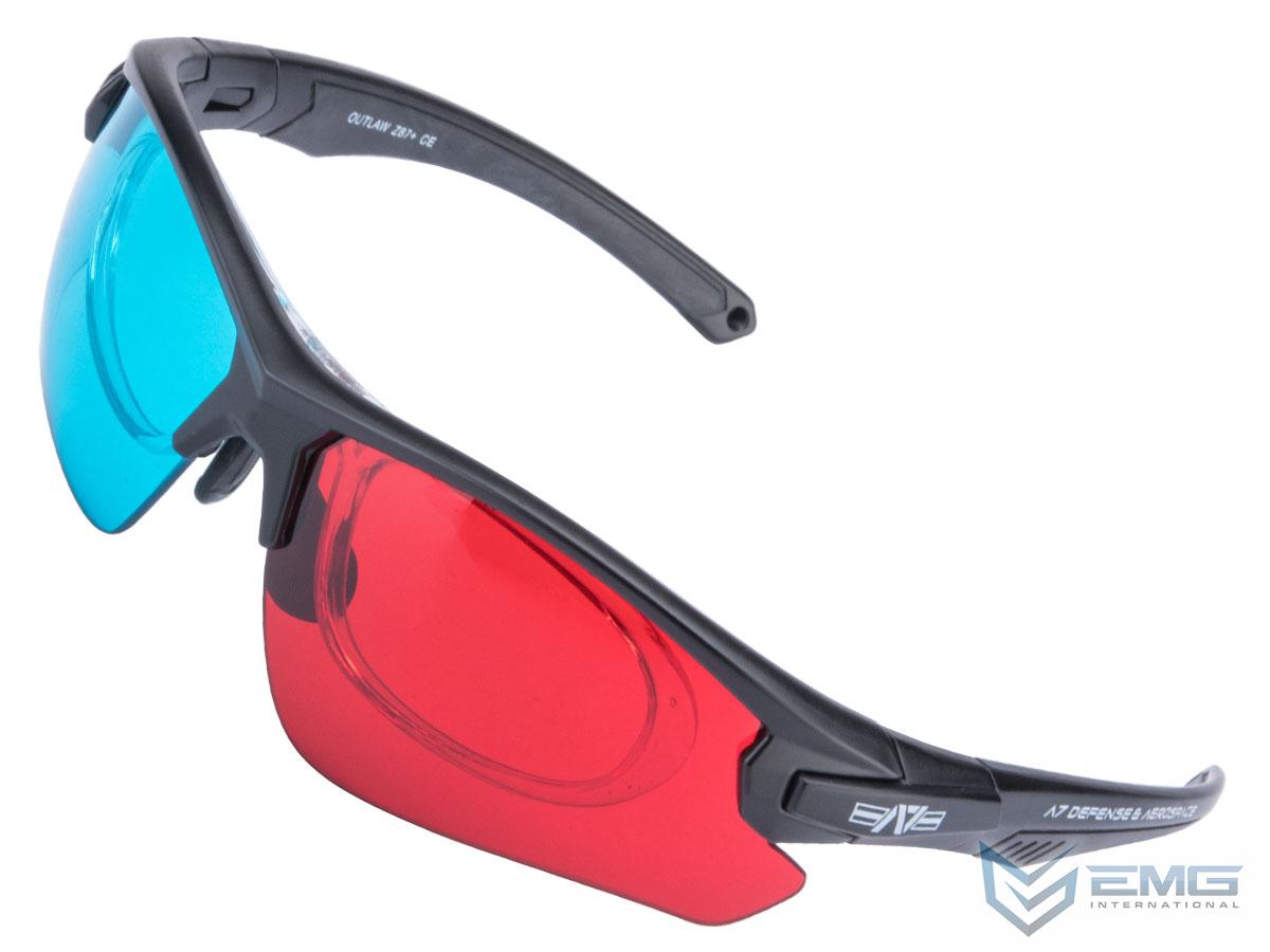 The "Outlaw" eyepro, by A7 Defense & Aerospace are superbly engineered with an emphasis on protection, style comfort and durability. The outlaw frames are constructed of lightweight, durable and virtually unbreakable TR-90 with a 3-way adjustable nose piece for a custom, comfortable and secure fit. The arms are comfortable do not cause pressure points or discomfort around the ears or on the temples and fully compatible with hearing protection. The lenses are made of A7's proprietary i-RMR super ballistic lens technology that features crystal clear, distortion-free optics and a hydrophobic outer and a military grade anti-fog inner coating. The lenses can be changed out quickly without any tools. The Outlaws feature the world's first and only ballistic 3D lenses called "IDV" (In Depth View) Hyper 3D Lens Technology. When paired with Strike's state-of-the-art 3D targets, this is not only a "WORLD'S FIRST", but this is directly commensurate with Strike's and A7's philosophy of innovation and being on the cutting edge.
