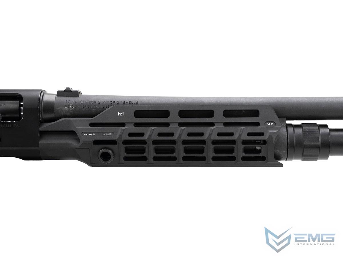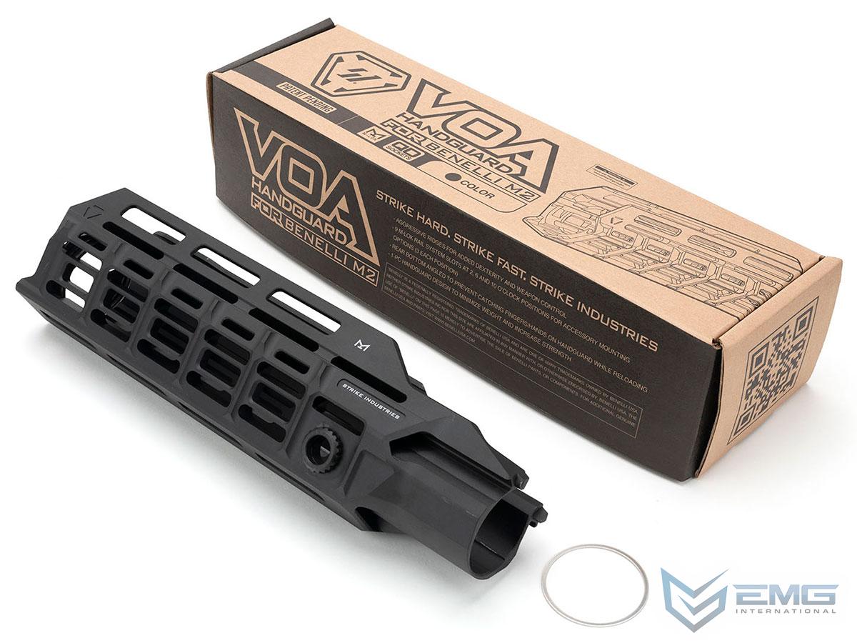 Strike Industries brings another dimension of functionality and innovation to one of the most popular inertia gas system shotgun platforms in the world, the Benelli M2. Pairing premium material construction with distinguished SI styling, the VOA Series is the first line of full aluminum forends ever made for Benelli/Mossberg/Remington. Forged by an intensive extrusion mold process and precision CNC milling, the VOA Series handguard for the Benellis M2 is an essential upgrade to your shotgun. The advanced ergonomic design is highlighted by the detailed finish of the hard anodized 6061-T6 aluminum. The semi-matte finish and contoured cuts allow for a finer grip. Complete with 9 total M-LOK rail system slots and rear bottom angled to prevent catching fingers/hands on the handguard while reloading, this 1-pc handguard is designed to minimize weight (under 9 ounces) and increase strength. Steel QD sockets at the rear of the handguard gives you more sling mounting options but this VOA handguard still retains access to the front OEM sling plate. The Strike Industries VOA Handguard for Benelli M2 gives you a drop-in installation option with endless multiple configurations for general use, operations or competitions.